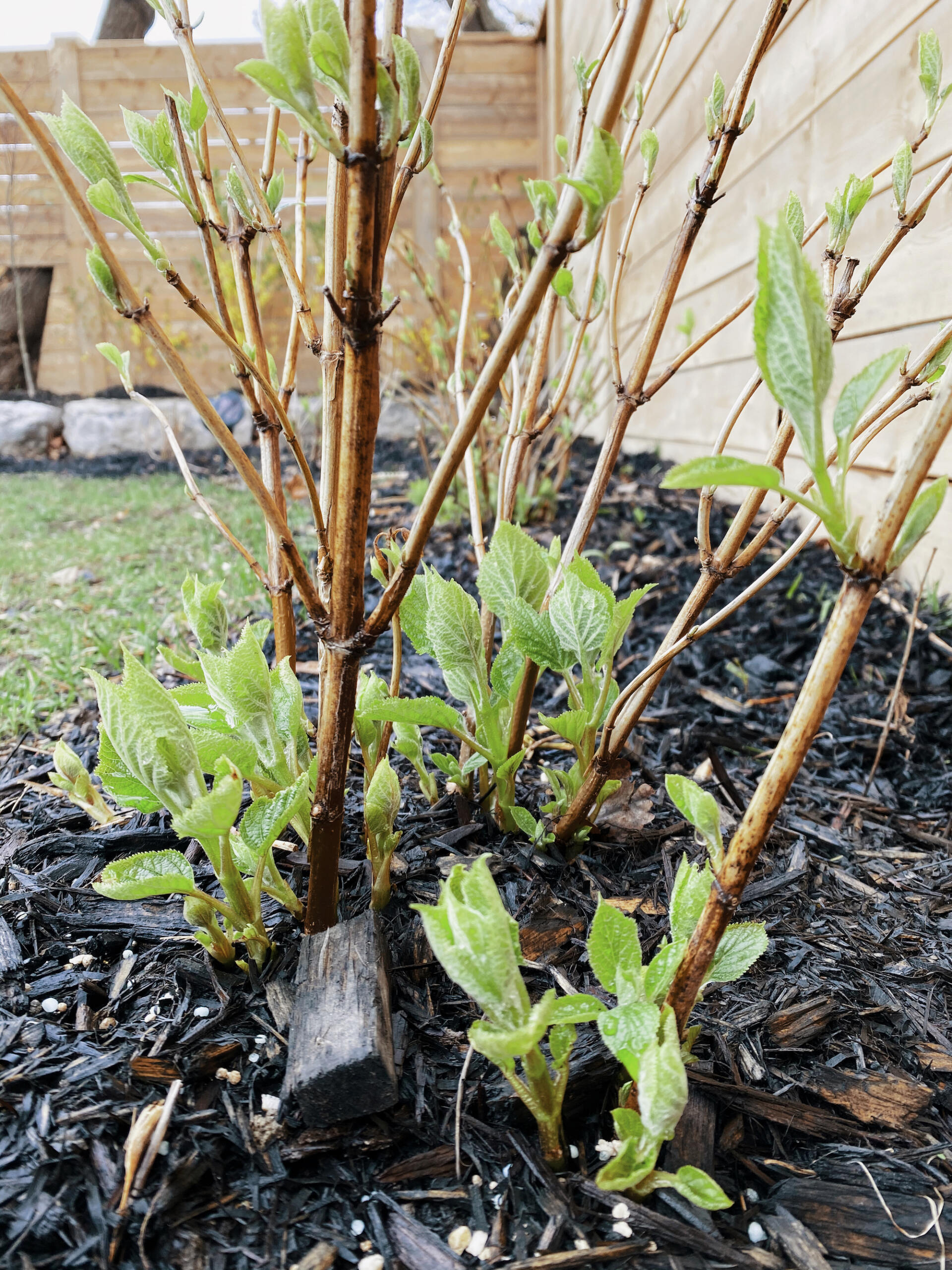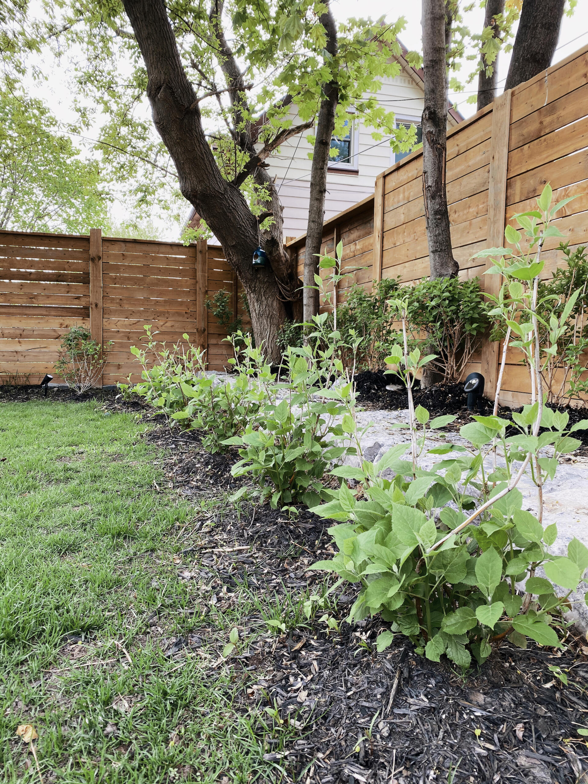 In case you’re curious, this is what my annabelle hydrangea hedge looked like through the spring and into the summer bloom season. I was curious to know what they would look like and when they would bloom, but couldn’t find photos anywhere, so I’m hoping this serves as a good resource for you!