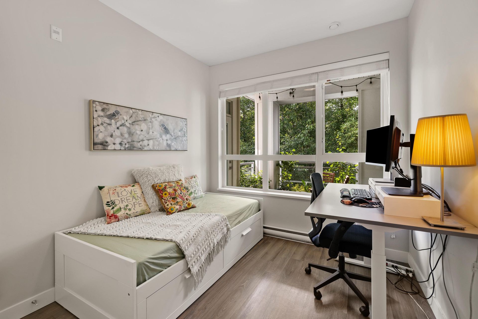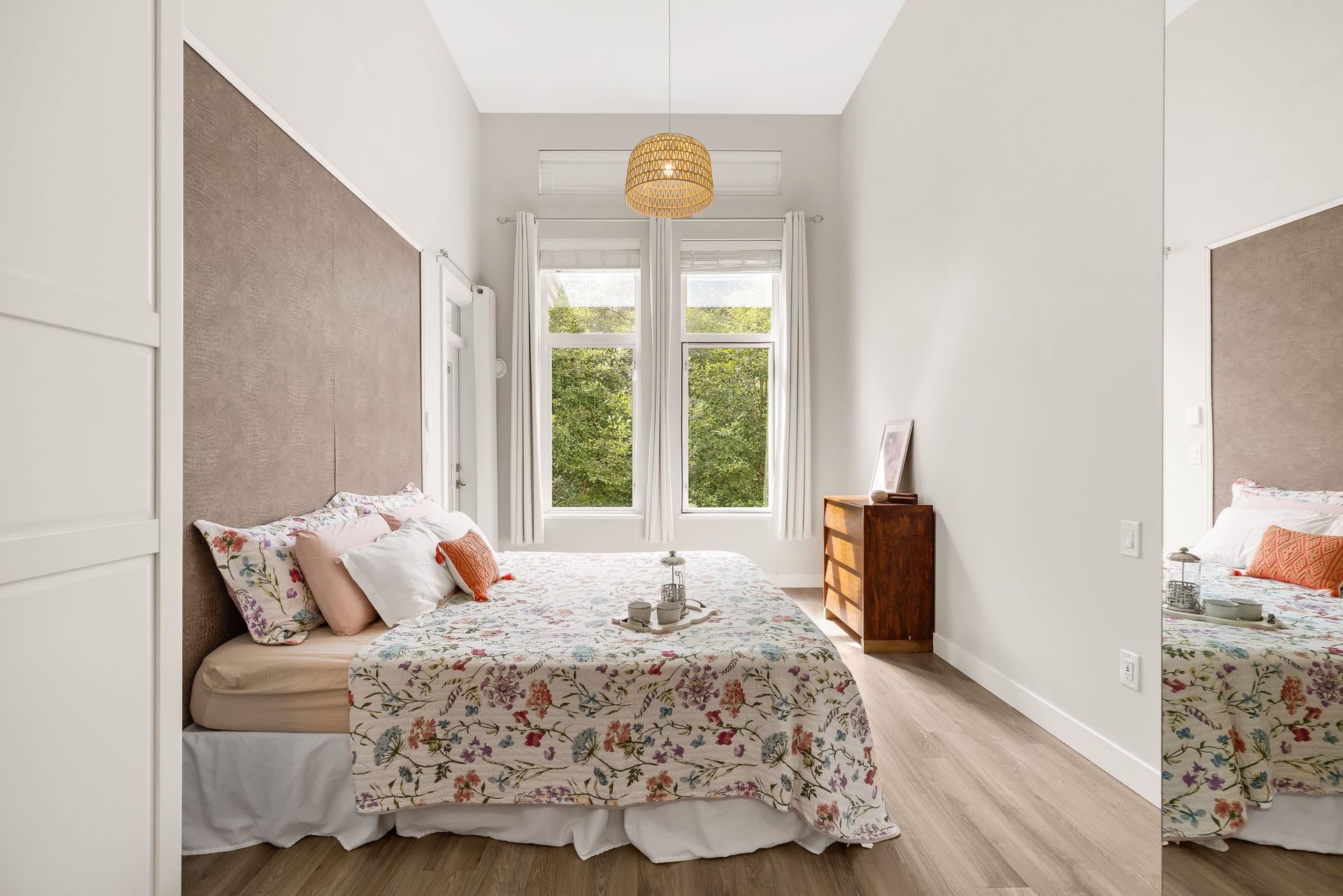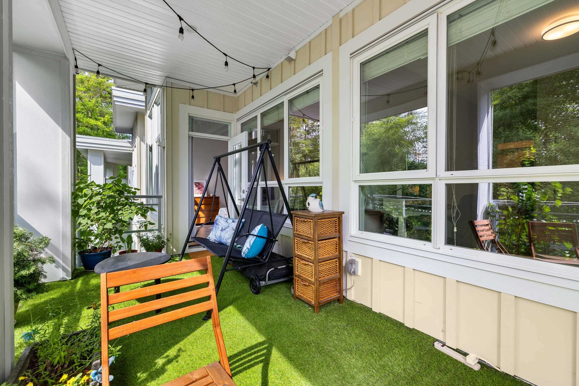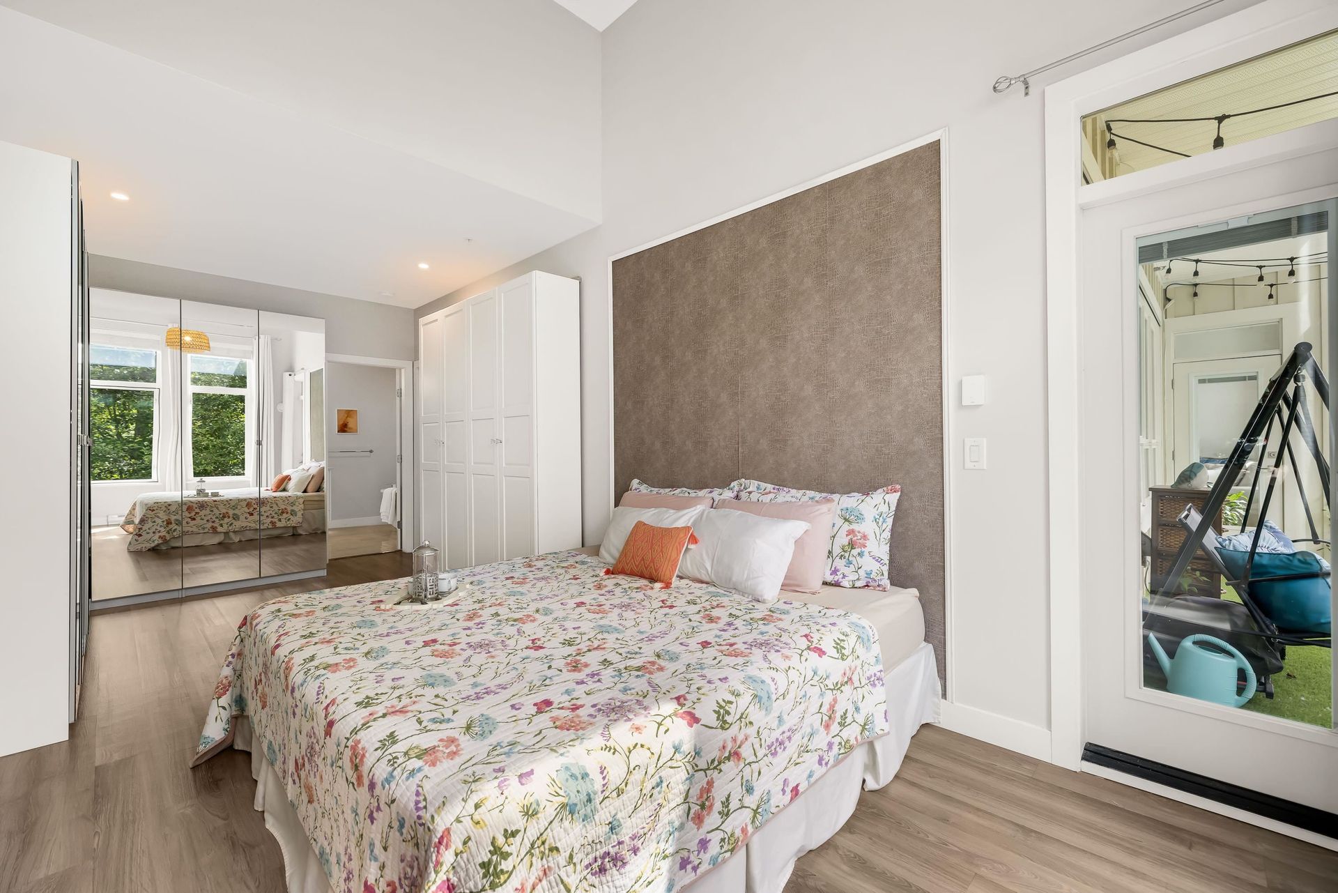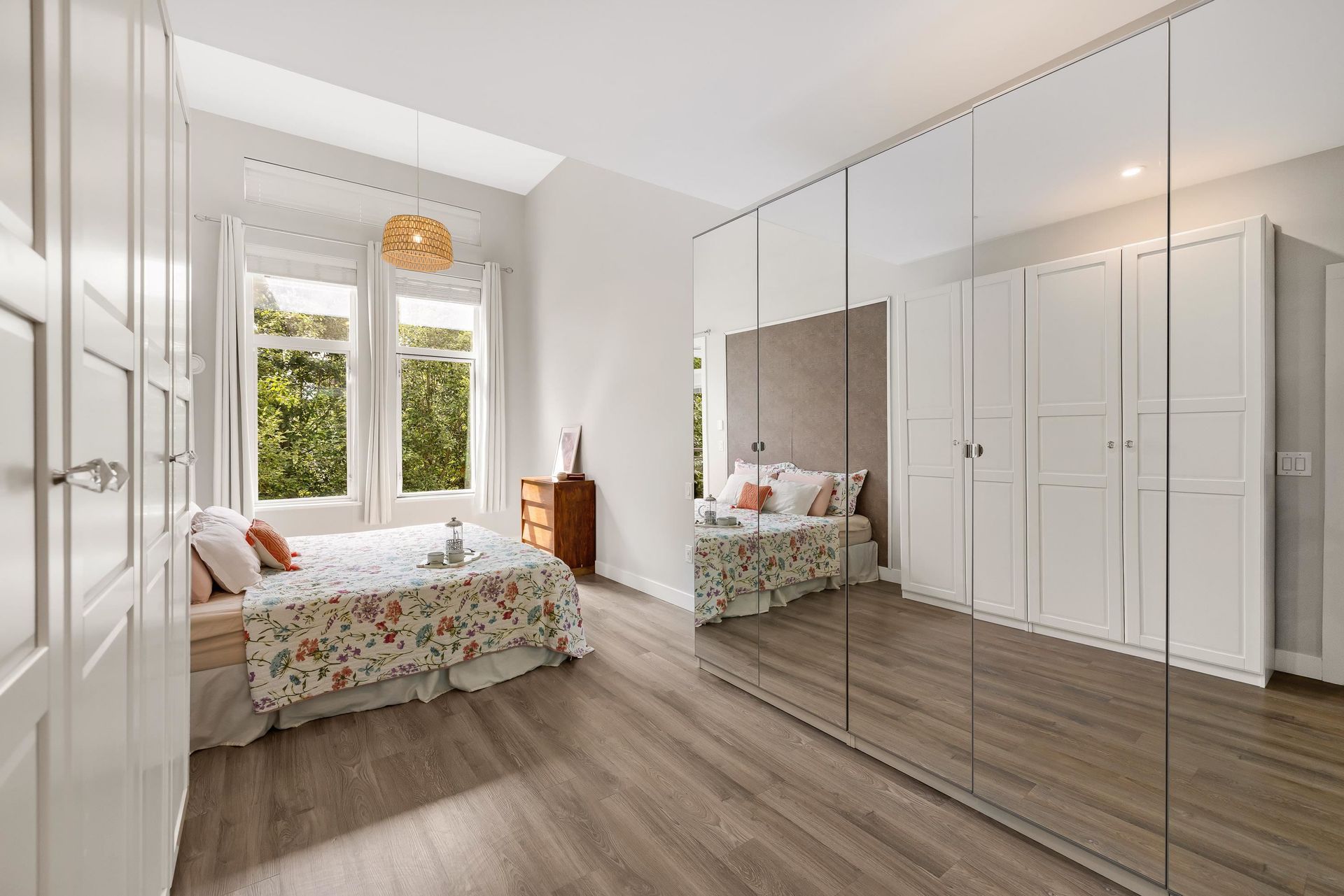 Penthouse living at Headwaters Club! This custom-built top-floor 3 bed, 2 bath home is the largest in the complex, backing onto a lush greenbelt with vaulted ceilings and a massive patio with gas hookup—ideal for relaxing or entertaining. The open-concept interior features all-white cabinetry, an extended quartz island, stainless steel appliances, and custom drawers. The expansive primary suite includes a 6-piece spa-style ensuite with heated floors, under-cabinet lighting, double sinks, walk-in shower, and a freestanding soaker tub. Upgraded MYSA smart thermostats, vinyl plank flooring, 3 parking stalls, and 2 storage lockers. Amenities include a fitness centre and business lounge. Close to Morgan Crossing, shops, schools, Hwy 99, and White Rock Beach. 2 Pets Allowed (Dogs & Cats)!